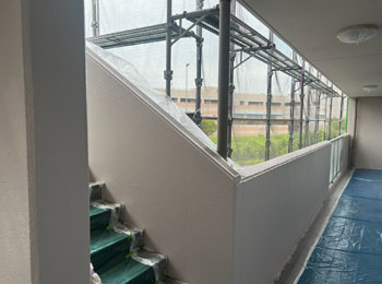 中塗り材と同じ塗料を塗っていきます。本塗料を2度塗ることで厚みもつき、機能性や耐久性を高めてくれる効果があります。