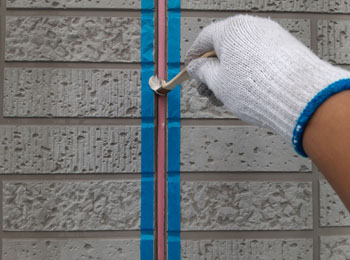 シーリング材の密着を良くするために、接着剤を塗っています。